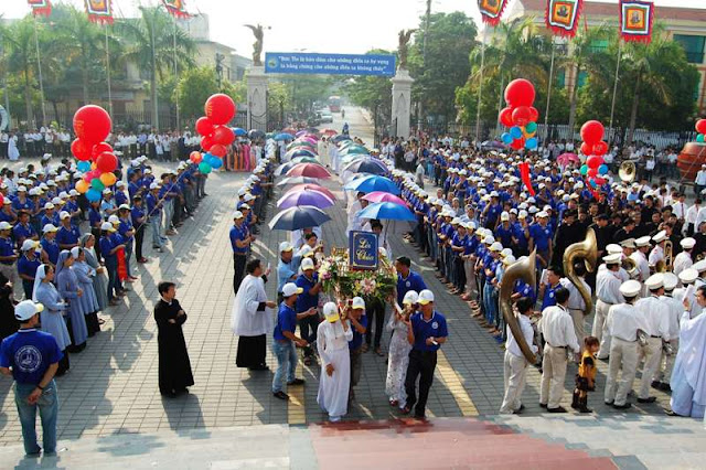 Với tiếng trống, tiếng chiêng rộn ràng cùng các đội kim thánh nhạc, làm cho bầu